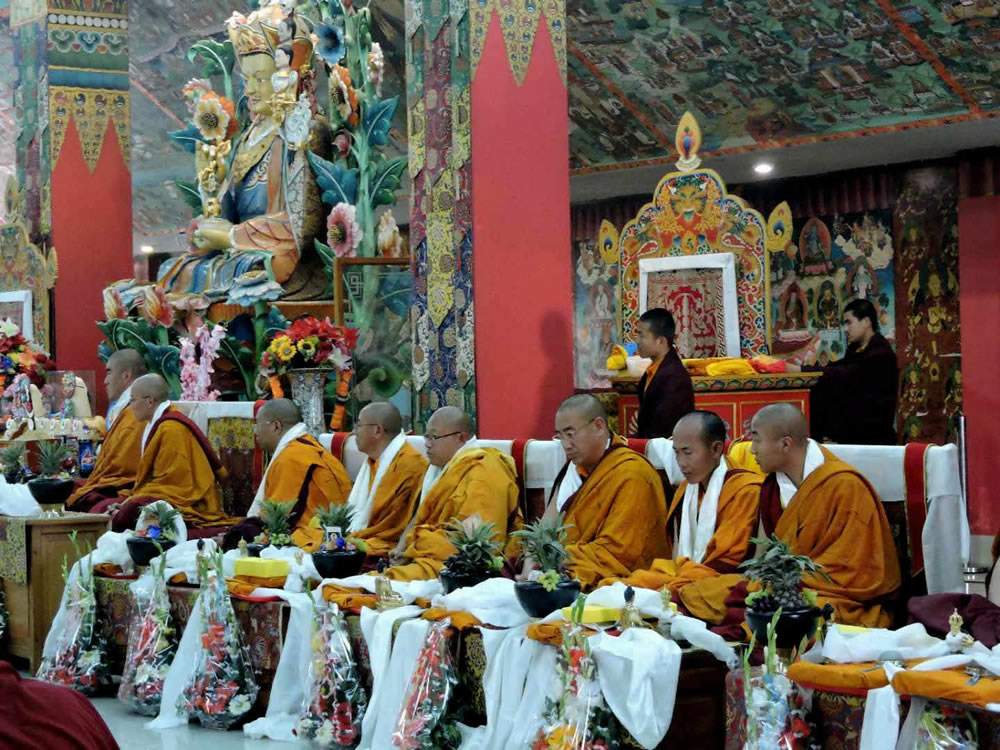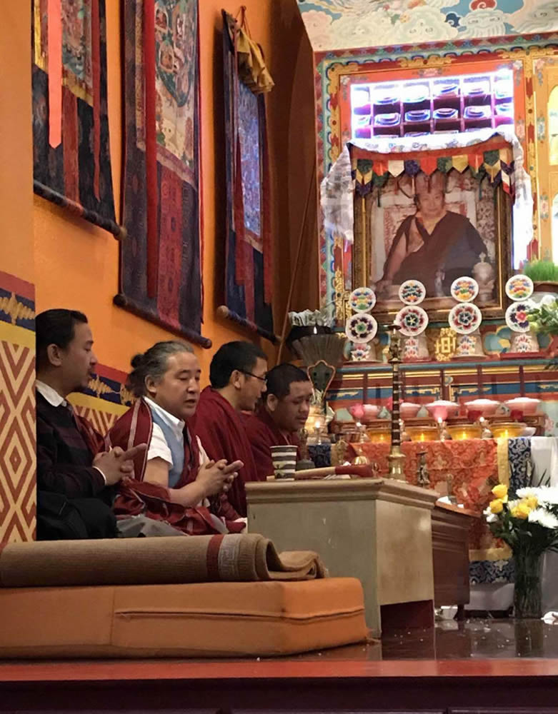 On the 18th of February, the entire family and Mindrolling sangha members commemorated the 10th Parinirvana Anniversary of our peerless root guru, Kyabje Mindrolling Trichen Dorje Chang. The entire sangha came together to practice the profound sadhana of Minling Dorsem led by Venerable Dagpo Rinpoche and Minling Umdze Venerable Choktrul Jigdral Ngawang Kunga Rinpoche. The ceremony was attended by Minling Sangyum Kushog, Jetsün Khandro Rinpoche, Jetsunla, Dungse Rinpoche, Jetsün Rinpoche, Venerable Nyoshul Khenpo Yangsi Rinpoche, monks, nuns and lay practitioners. Members of the Mindrolling sangha in Virginia, New York City and Taiwan also gathered to commemorate the parinirvana of Kyabje Mindrolling Trichen making vast offerings and prayers.