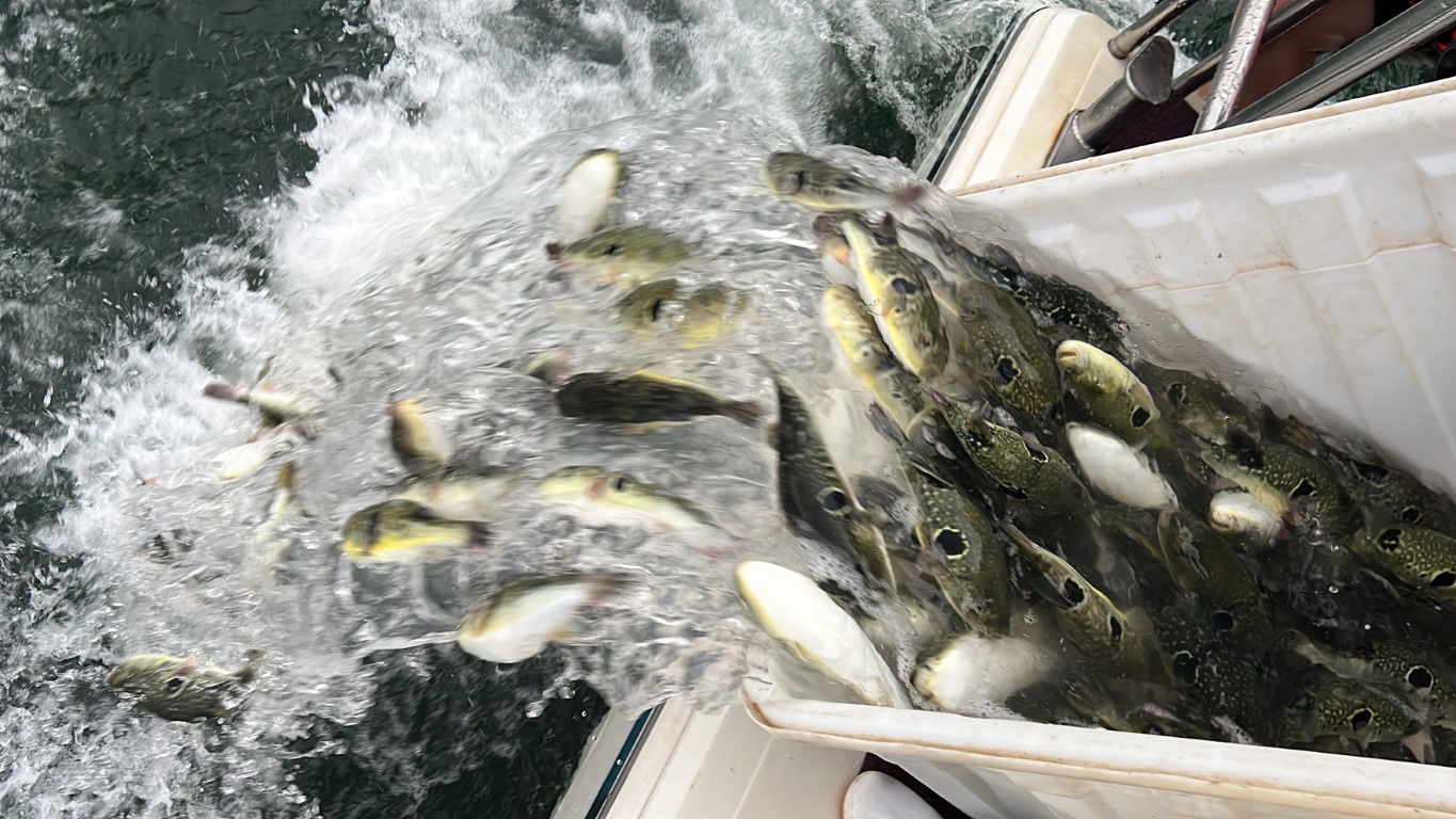 Early on the morning of August 19, 2022, the team at One Aspiration Life Saving Center went to the live fish market and began purchasing many sea snail periwinkles, octopi, crabs, eels, puffer fish, flounder, porgi, filefish, black spotted bass, rockfish and greenling fish and loaded them onto the boat. In total, more than 3.2 million aquatic animals were saved from the market and released back into their natural habitat in areas where fishing is forbidden. Many of these fish are pregnant at this time of year, and so even more lives were saved. The worldwide sangha donated more than US $40,000 that funded this life release.
