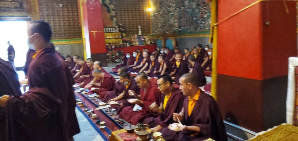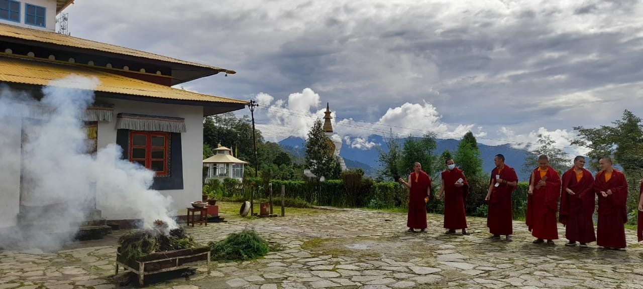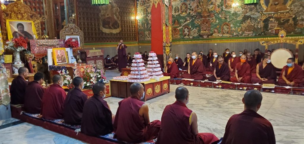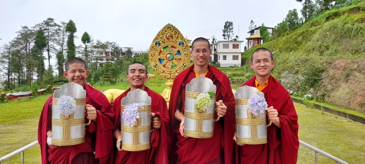 On July 28th, 2021, the entire Mindrolling sangha celebrated the birthday of Minling Dungse Rinpoche. Mindrolling Monastery and the branch Mindrolling Monasteries in Lava, Kalimpong and Sikkim, Samten Tse Retreat Center and Minling Pema Gatsal all began the day with the traditional mandala offering and extensive prayers for the long lives of Minling Dungse Rinpoche and Minling Jetsün Rinpoche. To mark the auspicious occasion, distribution of monetary donations, clothing, food, and basic needs was made to the entire community. The entire Mindrolling Sangha makes heartfelt aspirations for the long life of the two Rinpoches and the continued flourishing of the dharma throughout the world.