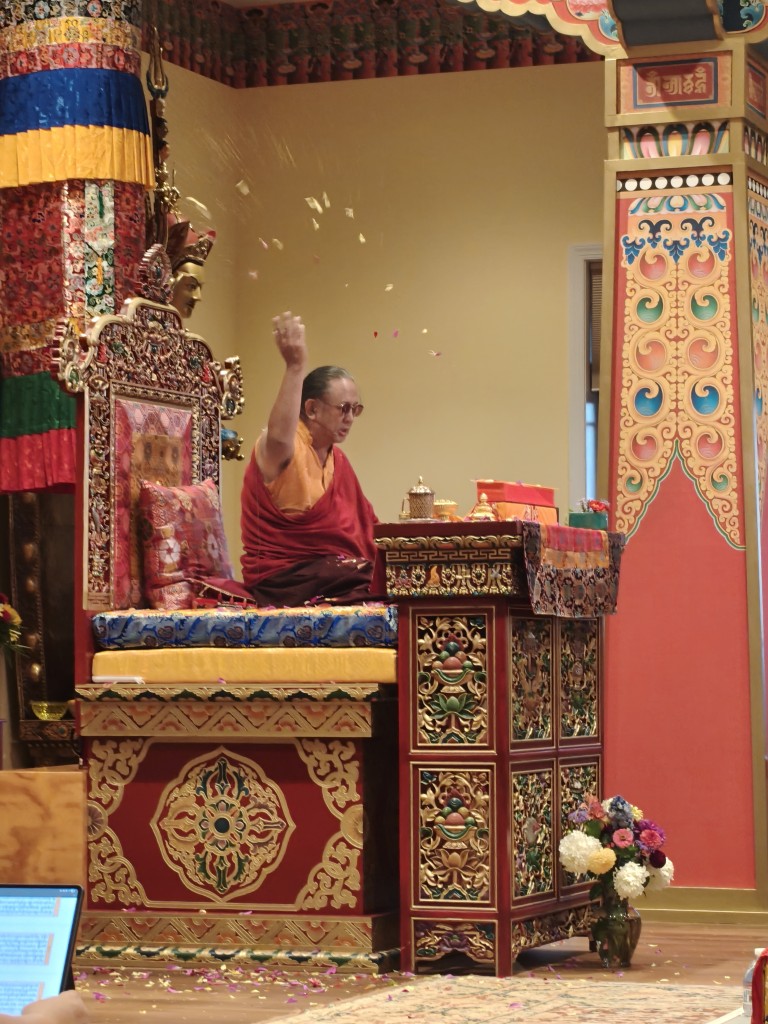 On the first day of teachings, after the sangha offered the mandala and ten sum (body, speech, and mind offerings) to Rinpoche, the Practice Intensive retreat began in Mindrol Gatsal. For 13 days, the annual Practice Intensive Retreat continued as Rinpoche bestowed teachings and instructions intertwined with practice days in the format of gar, dharma encampment.