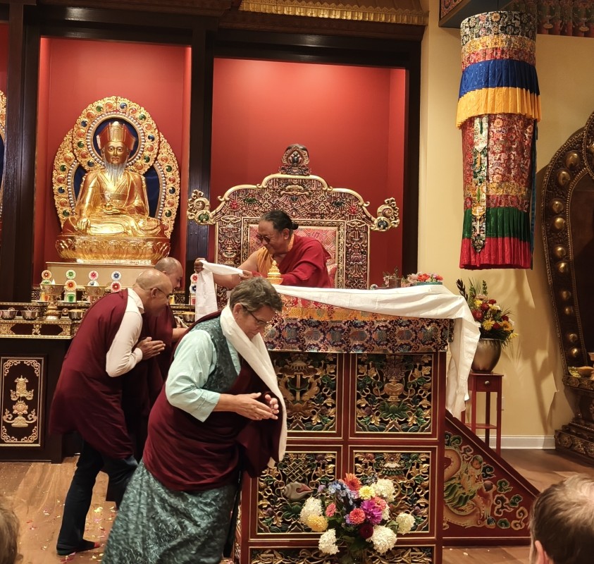 The transmissions concluded with Jetsün Khandro Rinpoche expressing deep gratitude to His Eminence Dzigar Kongtrul Rinpoche and the offering of mandala and ten sum to His Eminence by Dungse Rinpoche and Jetsün Rinpoche.
