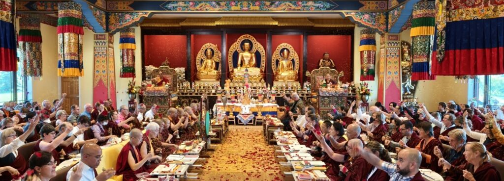 Through this year’s activities at Minling Pema Gatsal, may the gurus live long and continually manifest enlightened activity, may Dharma take deep root and flourish throughout the ten directions, and may the sangha, endowed with bodhicitta and the purely held vows, continue to accomplish the path and become the pristine vessel that holds the authentic Dharma.