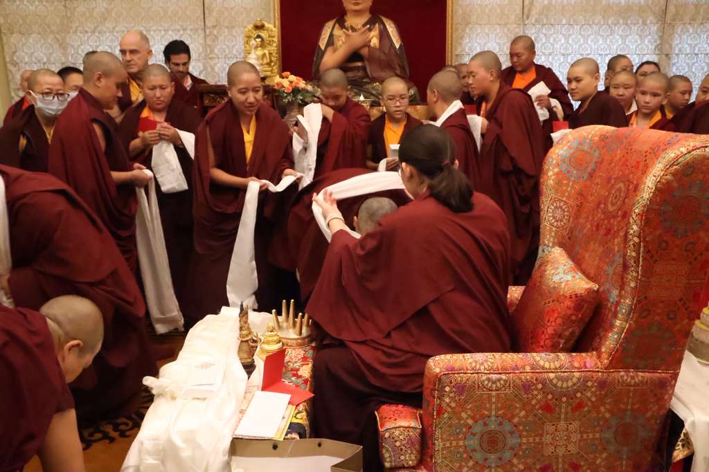 During these days in Mindrolling filled with the blessings of Kyabje Shechen Rabjam Rinpoche bestowing the Kama transmissions, all sangha members rejoiced at this happy occasion and felt great delight seeing Jetsün Rinpoche’s excellent qualities and knowing that Rinpoche continues to study, train, and receive all the transmissions necessary to fully hold the Mindrolling Lineage for the future. It was a great joy for all gathered to see that Jetsün Rinpoche will undoubtedly carry the light of wisdom for the next generation of practitioners who seek the genuine Dharma.