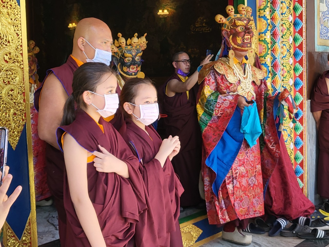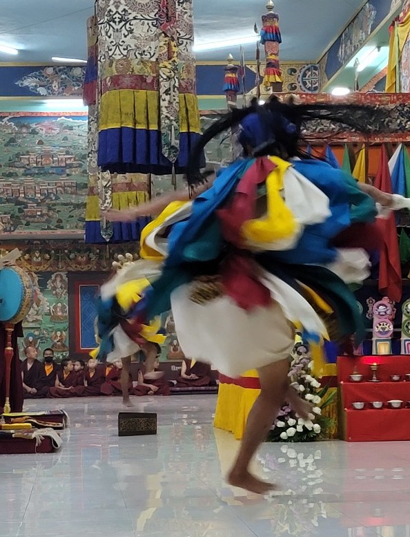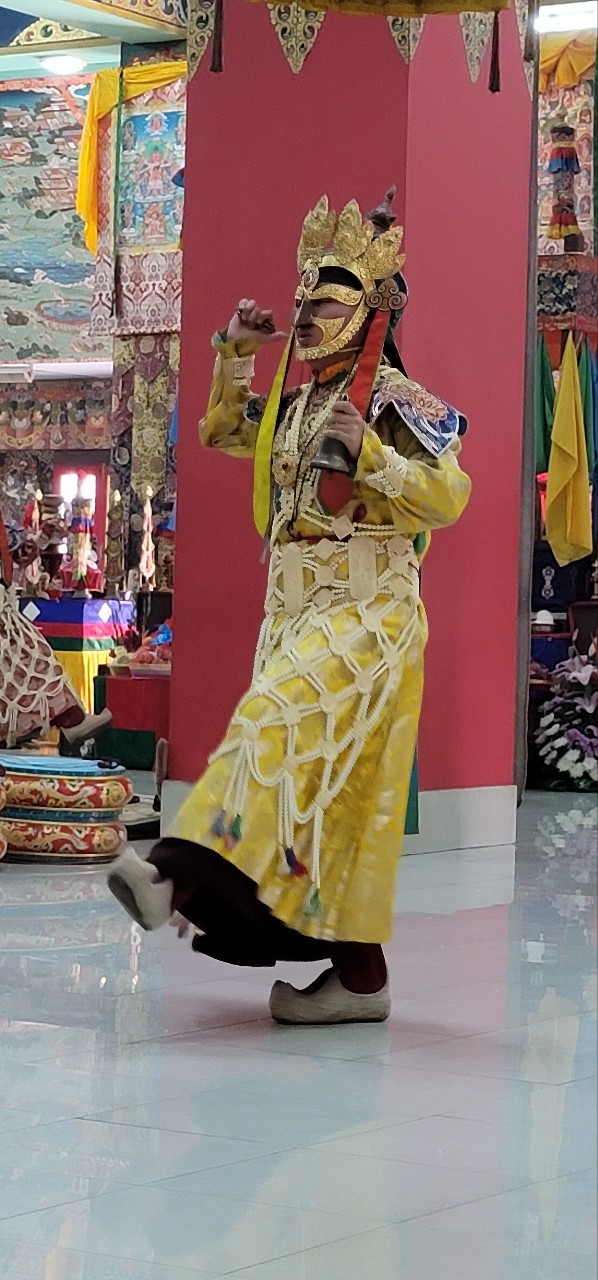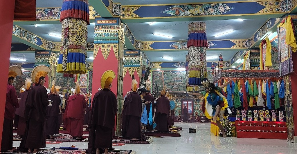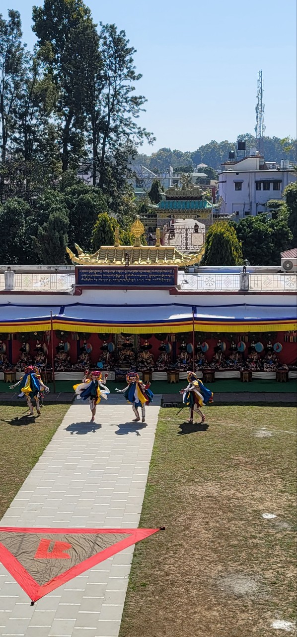 On February 23, 2022, the annual 7-day Yamantaka Shinje Drekjom drubchö began at Mindrolling Monastery. The Shinje Drekjom terma was discovered by the great terton and founder of Mindrolling, Chögyal Terdag Lingpa. This practice is done every year to dispel obstacles in the coming year and takes place from the 23rd lunar day of the 12th lunar month to the last day of the lunar year. This drubchö is known to be a most profound and powerful practice for dispelling obstacles and is filled with inconceivable blessings. On the 29th lunar day, the assembly performed the Zor Cham, or ritual dance, which is said to have great power to dispel obstacles for the world and especially for all who see it. For the first time in two years, the lay Tibetan community was able to attend the 29th day Zor Cham. It was a day of great joy as the community was able to gather again to benefit from this profound practice again after so long.