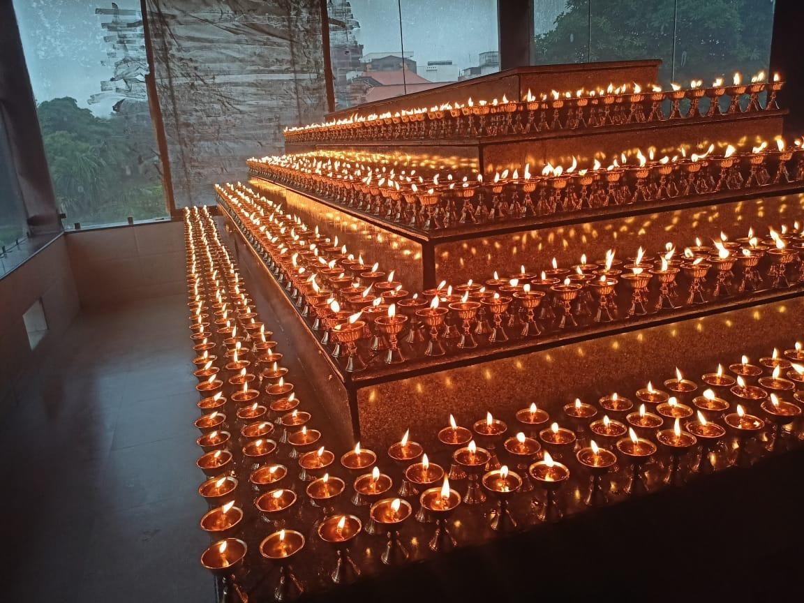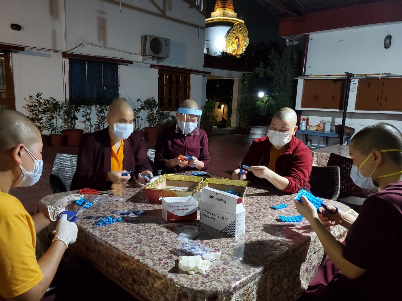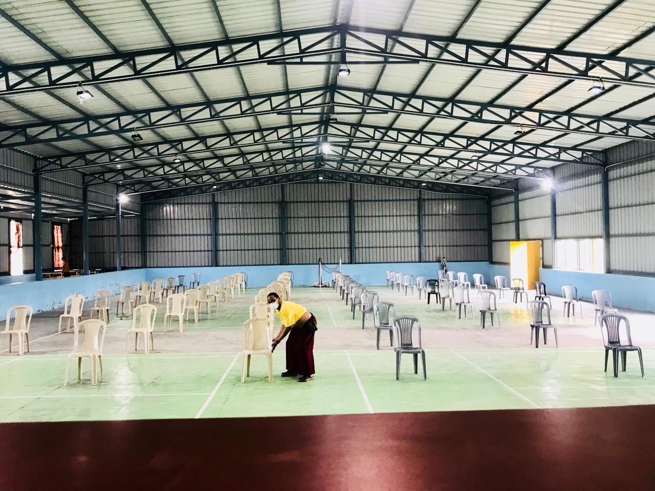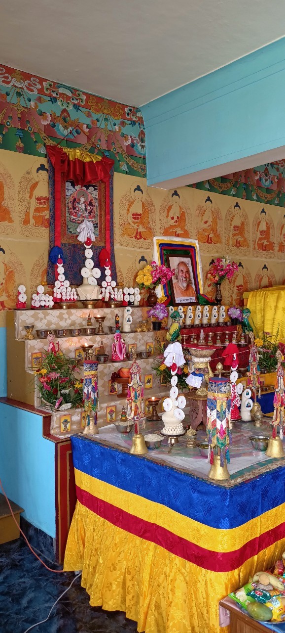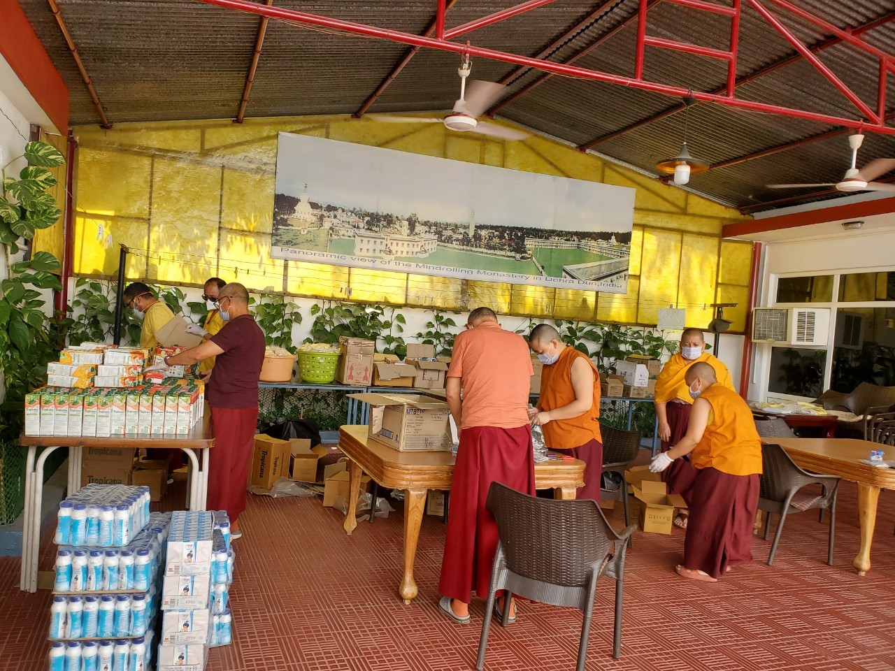 As India faced incredible challenges during the most recent wave of COVID-19, the administration team of Mindrolling Monastery worked tirelessly to protect the safety of the monks and the lay community. Facing such a crisis with shortages of so many needed supplies, the team did widespread testing, treated all those who tested positive and contained the spread of the virus using quarantines and contact tracing. After weeks of hard work, the spread of the virus within the Clement Town Tibetan Colony was contained and the safety of those in the colony has been successfully secured. Once the situation was controlled and the safety of the community had been secured, Mindrolling Monastery organized a huge vaccination effort to get the entire monastic community of Mindrolling and the Tibetan colony vaccinated. The clinic took place in the Guru Rinpoche shrine room of the stupa at Mindrolling Monastery.