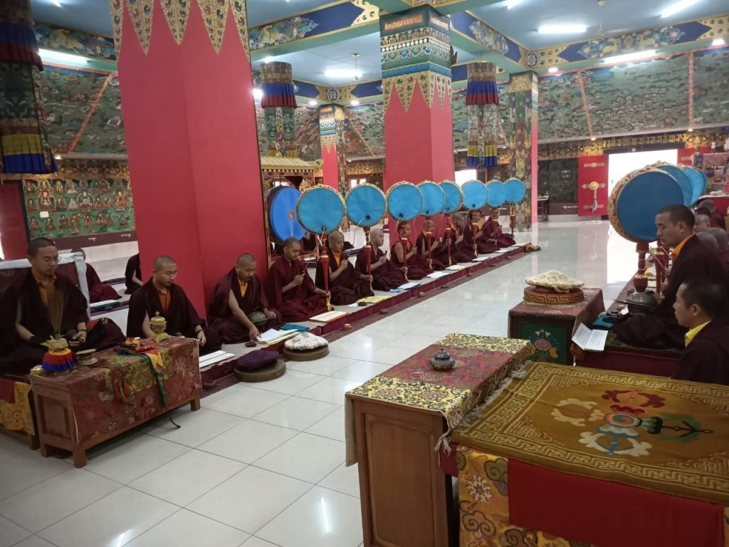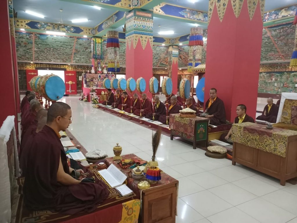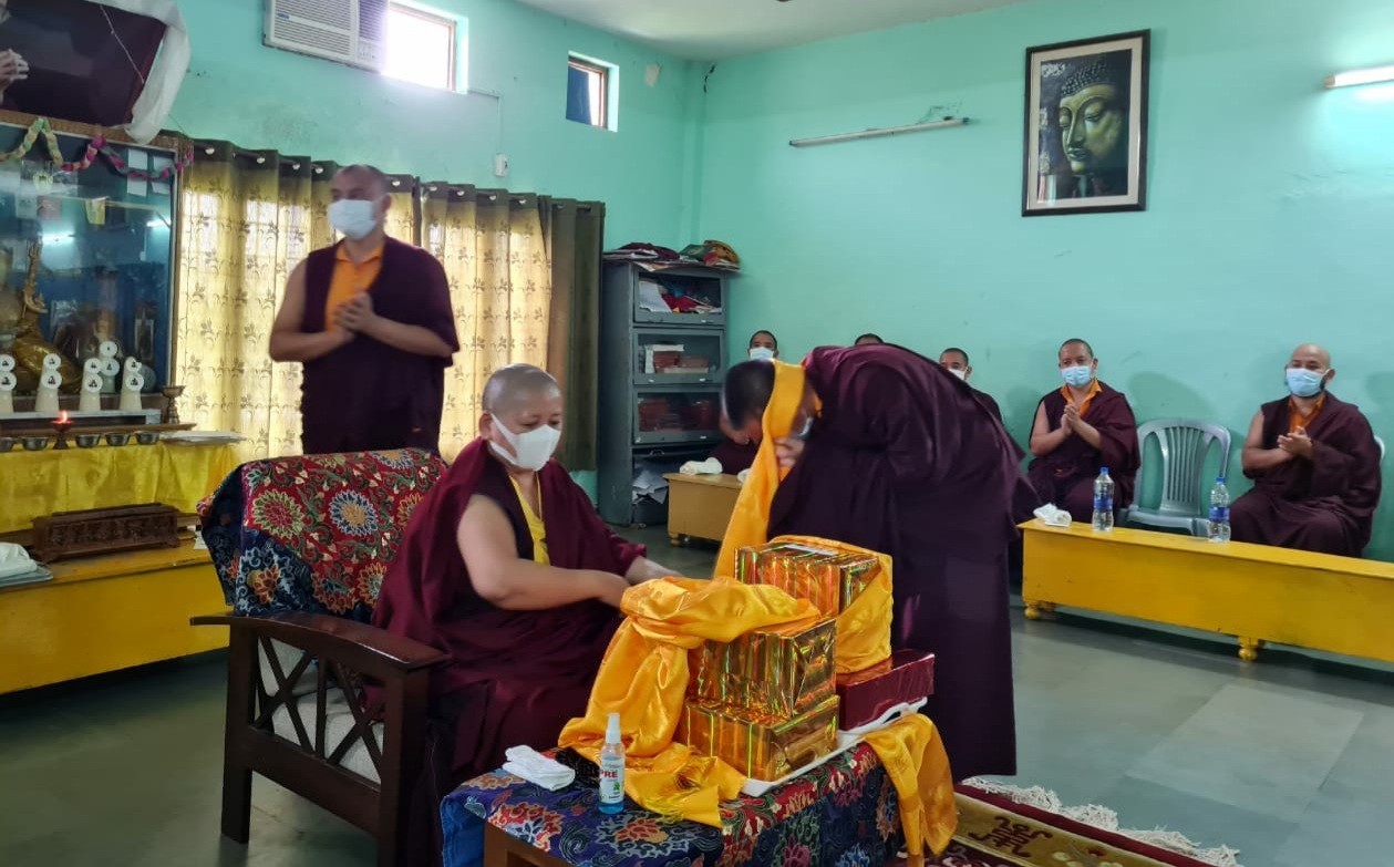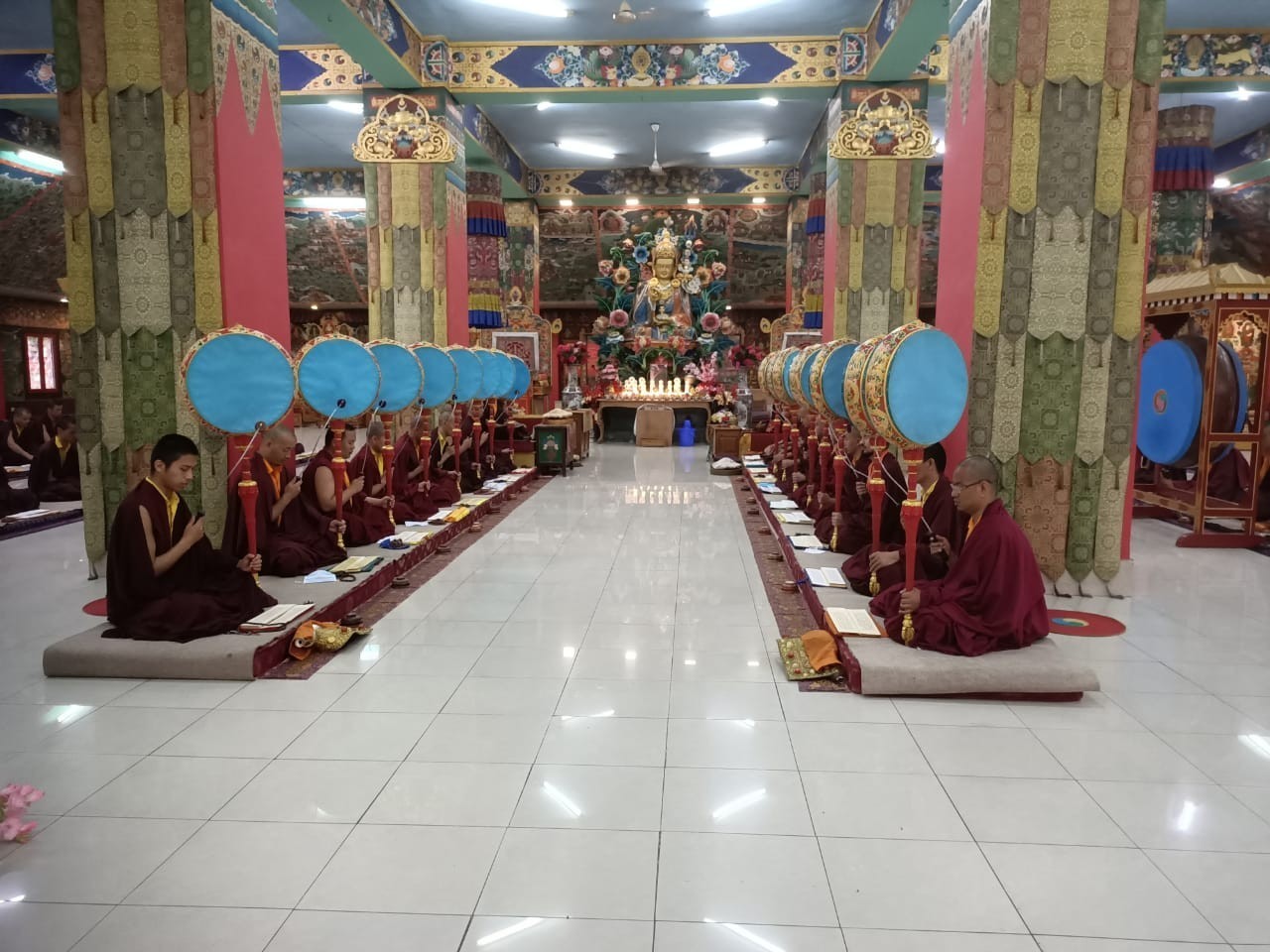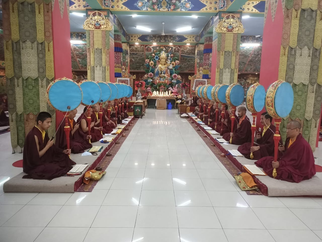 June 20th, 2021 was the 10th lunar day of the 5th lunar month, known as the Telda Tsechu. This day marks the miraculous arising of Guru Rinpoche from the lotus blossom for the benefit the beings of this world. To mark the anniversary of this most auspicious occasion, the monks of Mindrolling Monastery and the nuns of Samten Tse Retreat Center made vast offerings and dedicated prayers for the benefit of all beings and in particular to dispel obstacles facing the world and to ease the suffering of the COVID-19 pandemic.