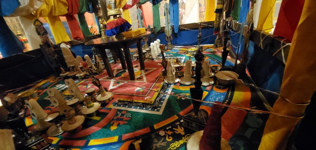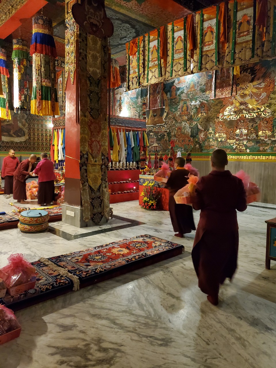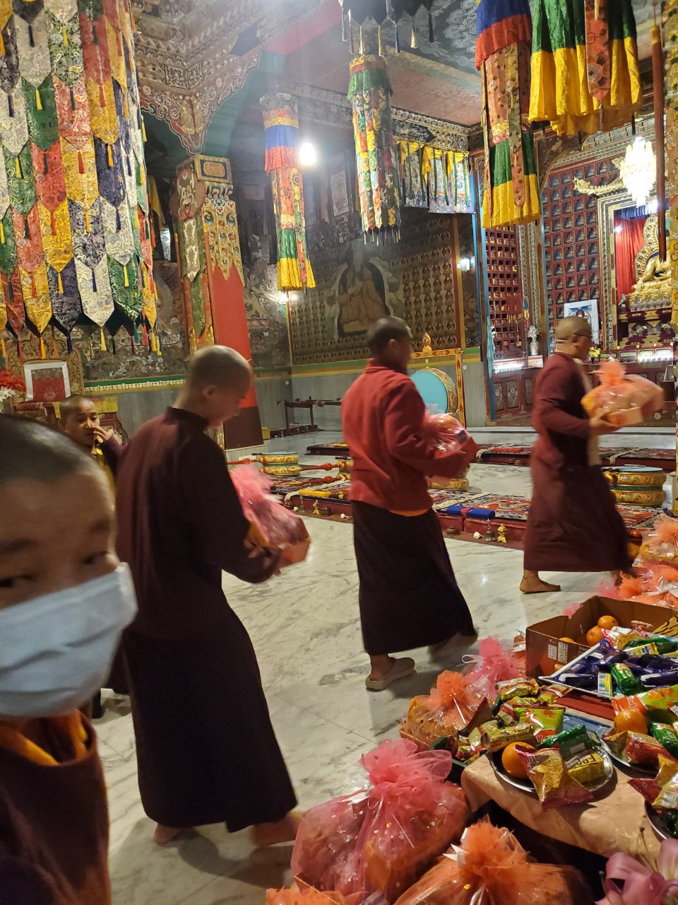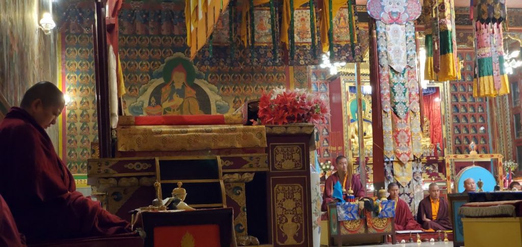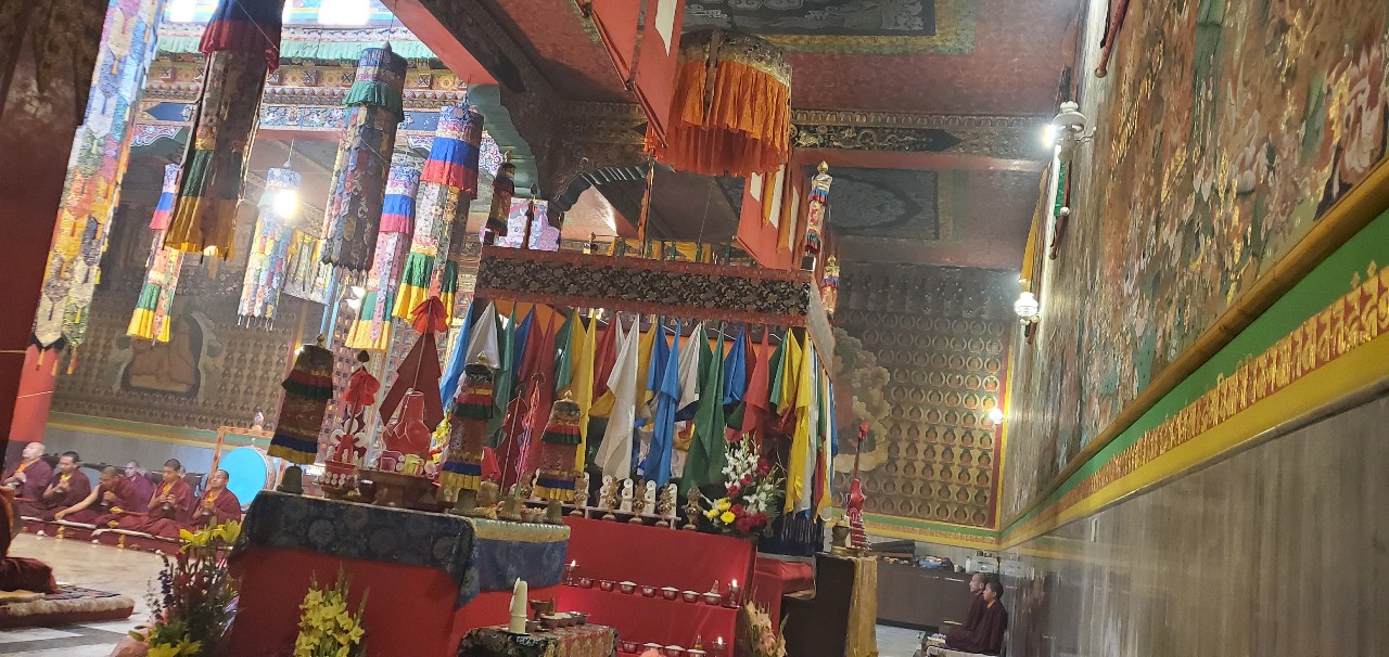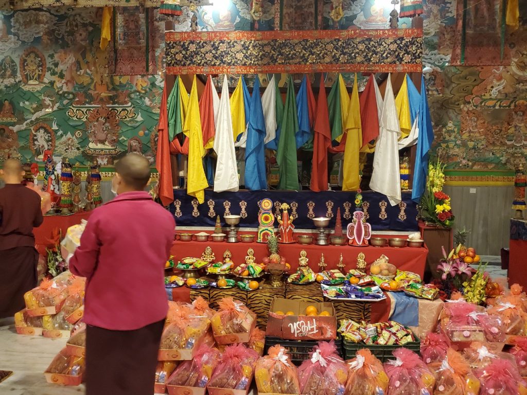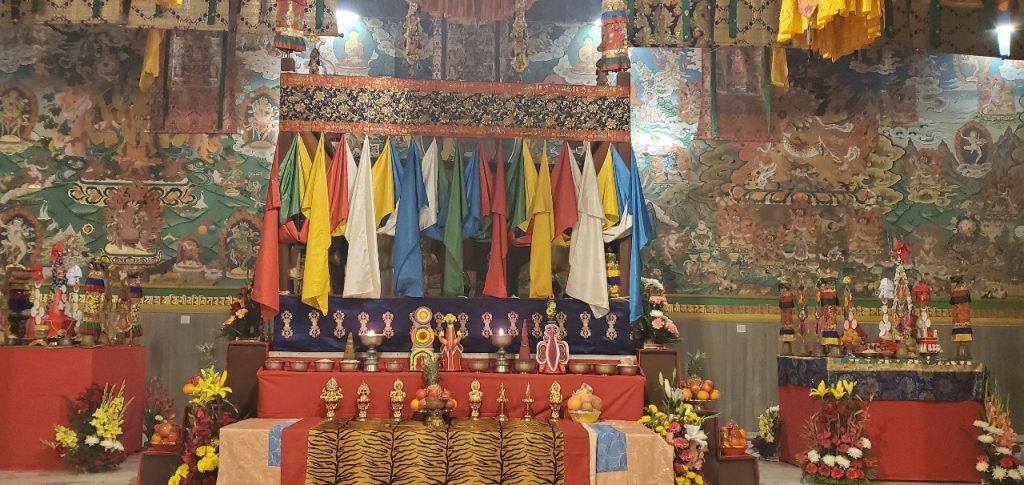 The drubchen was presided over by Minling Jetsün Khandro Rinpoche, Tulku Gyurme Chime Dirjee and Choktrul Ngawang Jigdral Rinpoche. The assembly of Mindrolling tulkus, khenpos and monks, as well as the nuns of Samten Tse Retreat Centre are all participating in the practice. Due, however, to the continuing pandemic and the need to maintain social distancing within the shrineroom, residents of the local Tibetan community, the public, and the many western practitioners who have attended the drubchen in past years are not in attendance this year but are remaining connected with individual practices of the Mahakrunika Mahasadhana and other practices. The drubchen concluded on the 27th of February.