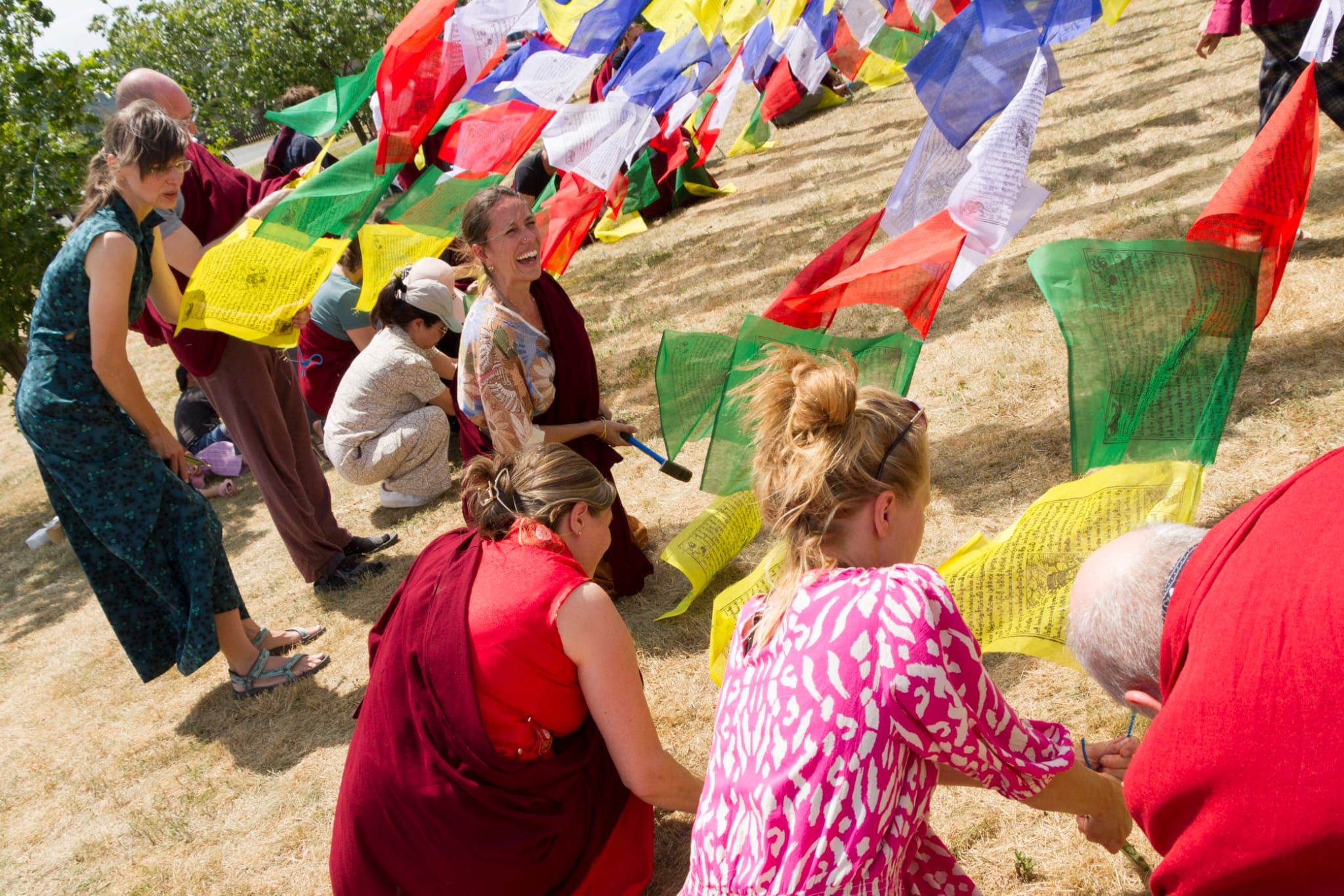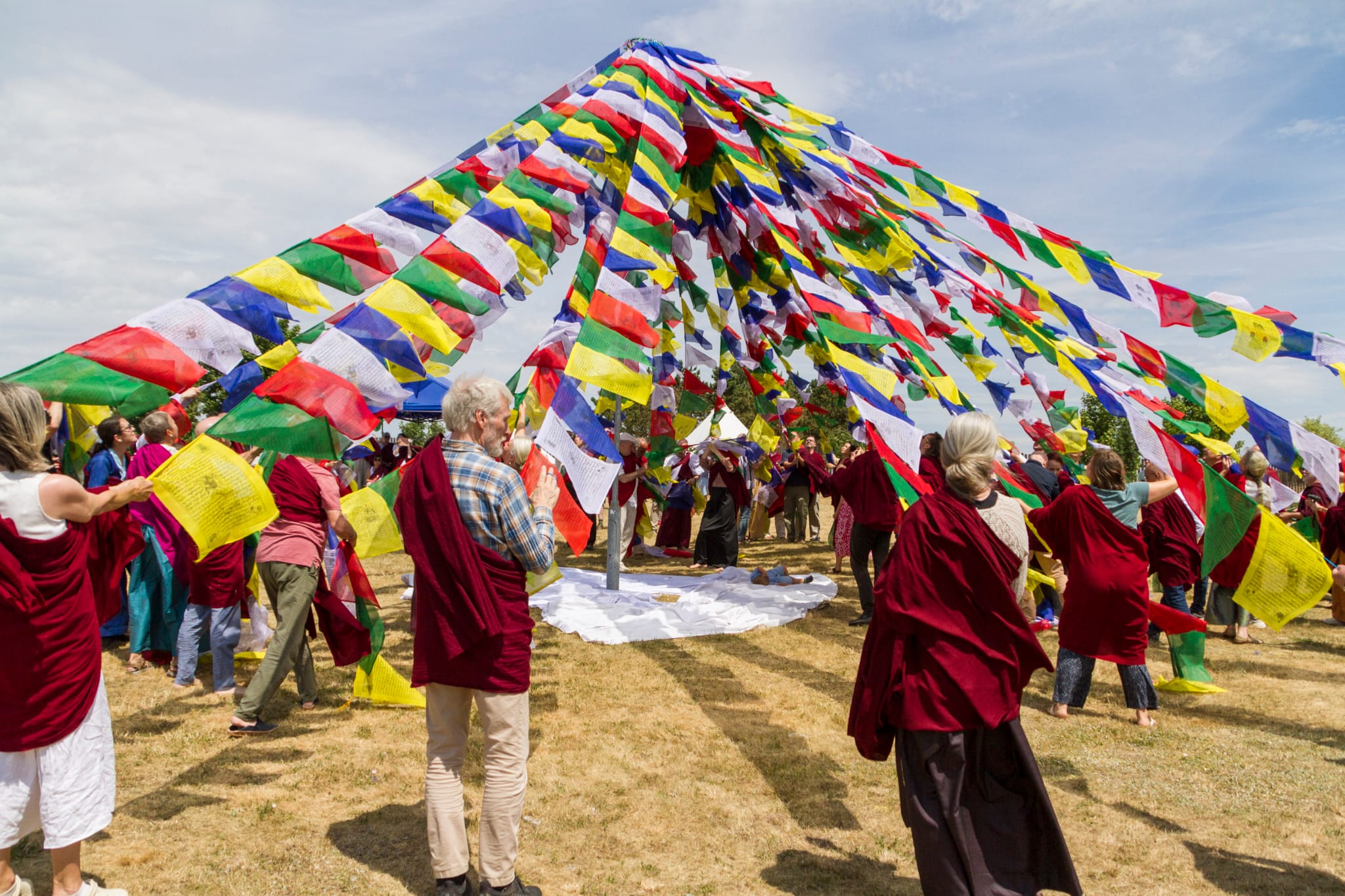 The chö gar was established following all proper rituals for making offerings and preparing the land. Following this, the sangha raised lungta flags and joyfully shouted the traditional “Kiki Soso!” for the tendrel of long life.