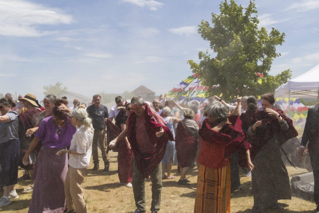 These blessed days brought a wonderful cohesion to the sangha as everyone harmoniously moved between hearing the teachings, practicing in the chö gar, engaging in daily group practice, community life, and the shared responsibilities of maintaining the retreat environment.