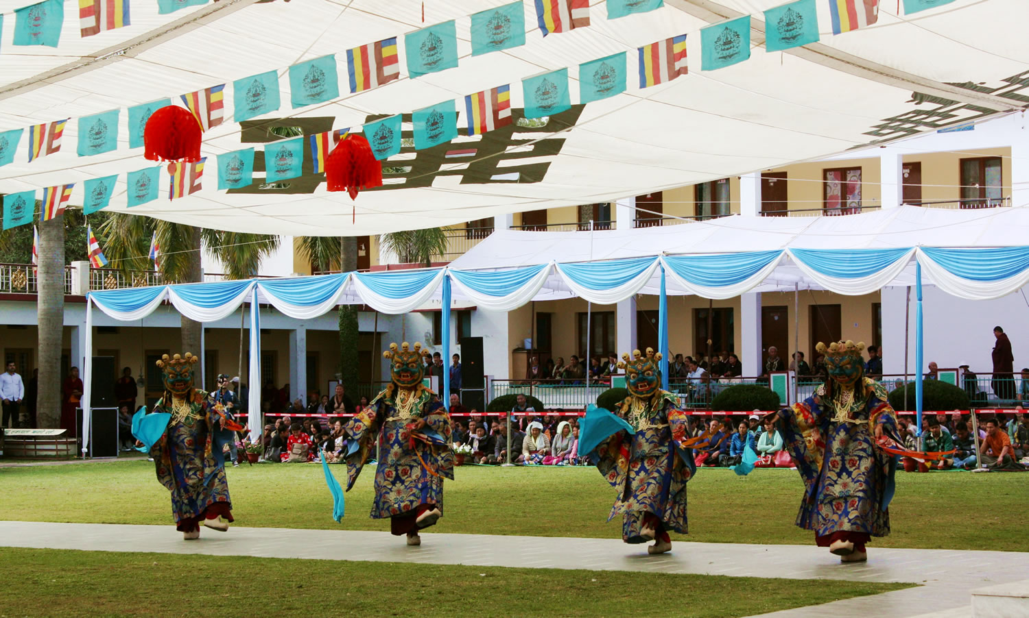 Among the many sacred annual events, the Tse Chu Chenmo is renowned throughout the Buddhist world as one of the most important ceremonies. Held in 2016 on the 18th of March (the 10th day of the 2nd lunar month), monks of Mindrolling performed the Great Tse Chu Cham. This spectacular ritual dance, revived by Terdag Lingpa in the 17th century, celebrates the day Guru Padmasambhava manifested as the Lotus Born in the 8th century. The entire awe-inspiring ceremony was attended by many rinpoches and tulkus, with visiting dignitaries from local government, hundreds of monks, nuns and practitioners from around the world, and thousands of people from the local community.