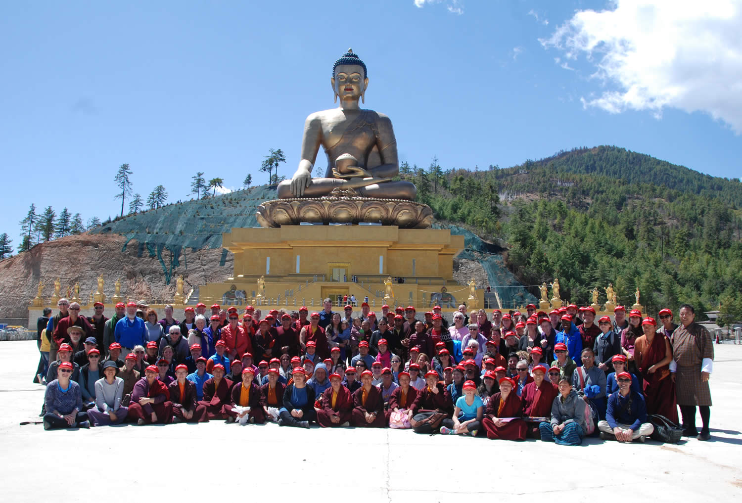 Five days after the wonderful Tse Chu, over 180 members of Mindrolling International’s sangha of monks, nuns and lay practitioners embarked on an incredible pilgrimage to Bhutan, visiting the sacred sites blessed by Guru Padmasambhava. Guided with great care by Her Eminence Mindrolling Jetsün Khandro Rinpoche, and blessed with the presence of the entire Mindrolling Ladrang, this group traveled and practiced together in harmony and with tremendous joy from the 23rd of March to the 4th of April.