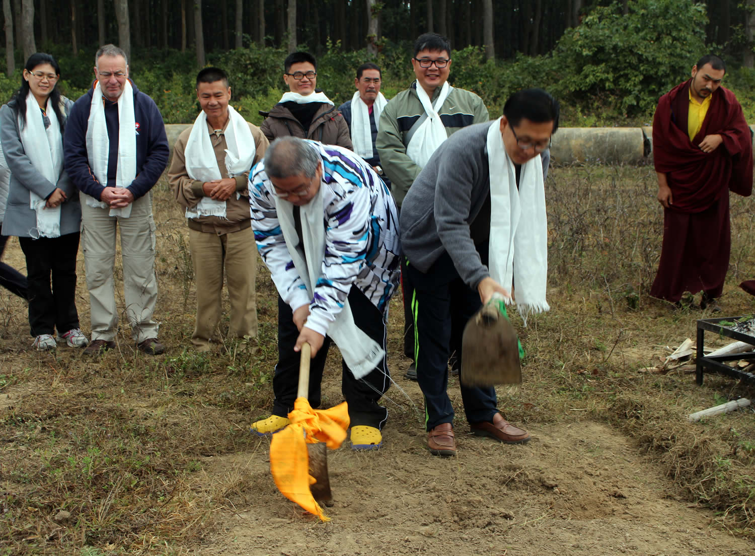 One of the last ceremonies of this auspicious year of the Fire Monkey was the groundbreaking ceremony for the Mindrolling International meditation center, which took place under the direction of Jetsün Khandro Rinpoche on the 25th of December. The visiting delegation of members of the Malaysia Mindrolling Sangha — the patrons of this project — joined the rinpoches, monks and nuns of Mindrolling on this auspicious and happy occasion.